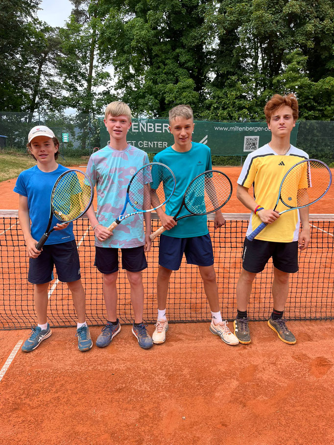 Unser Junioren 18 I Jannik Laatz, Aaron Pelzbauer und Moritz Bartsch haben ein tolles Ende ihrer Jugendzeit gefeiert. Gemeinsam mit dem ein Jahr jüngeren Marco Hock, der auch im kommenden Jahr noch mal in der U18 an den Start gehen darf, erreichten sie bei der Endrunde um die Nordbayerische Mannschaftsmeisterschaft das Finale. Als Vizemeister ihrer Nordliga 1-Gruppe rückten sie kurzfristig nach, weil die Jungs des TVA Aschaffenburg nicht in Nürnberg antreten konnten, und unsere Mannschaft nutzte die Gunst der Stunde. Als Gegner im Halbfinale wurde der TSV Altenfurt zugelost, der mit 4:2 besiegt werden konnte. Jannik, Aaron und Marco gewannen souverän ihre Einzel. Nur Moritz musste sich knapp im Matchtiebreak geschlagen geben. Jannik und Aaron machten dann im ersten Doppel aber den Finaleinzug klar. Dort wartete am nächsten Tag der favorisierte TC RW Erlangen, doch unsere Jungs wehrten sich kräftig. Diesmal holte Moritz den einzigen Sieg im Einzel, doch auch Marco unterlag an Position vier nur knapp im Matchtiebreak. An der Seite von Jannik konnte er das zweite Doppel gewinnen, doch am Ende stand eine knappe 2:4-Niederlage auf der schönen Anlage des TC Noris WB Nürnberg. Insgesamt spielen unsere Junioren 18 I eine fantastische Saison und dürfen sich nun zweitbestes Team der U18 zwischen Regensburg und Aschaffenburg nennen.